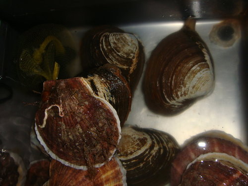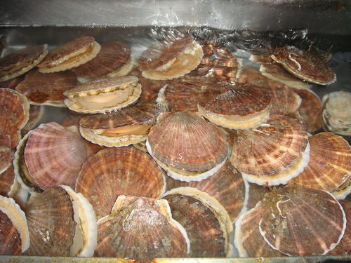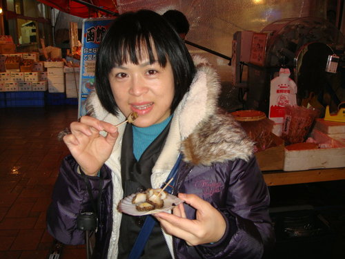 今天早餐沒有吃的很飽唷!因為我們要來朝市吃海鮮啦!有沒有看到這一顆顆的扇貝們,貝殼一開一合的歡迎著我們
