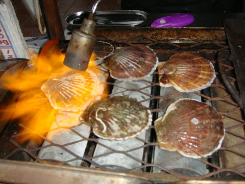 他們烤扇貝的方式還蠻新鮮的,先用噴槍大火將扇貝上殼烤開來然後再用小火將扇貝肉烤熟,烤了5.6分熟之後還要取出扇貝內的腸子