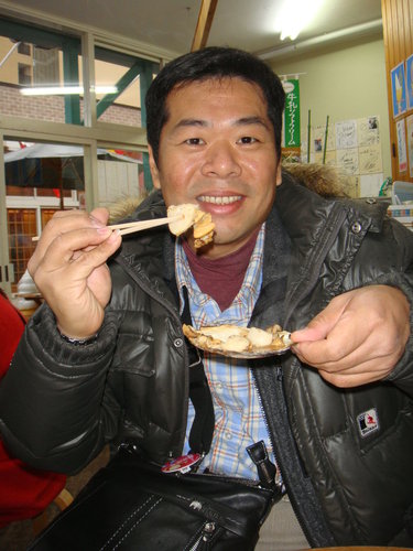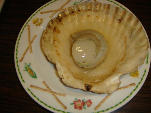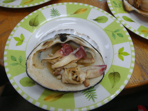 上圖右邊看起來像是顆大蛤利,但它的名稱為北寄貝下圖這就是烤完成的北寄貝,我們沒吃這是借團友的來拍拍聽團友吃完說味道還是很鮮美,肉質感就沒有扇貝來的好