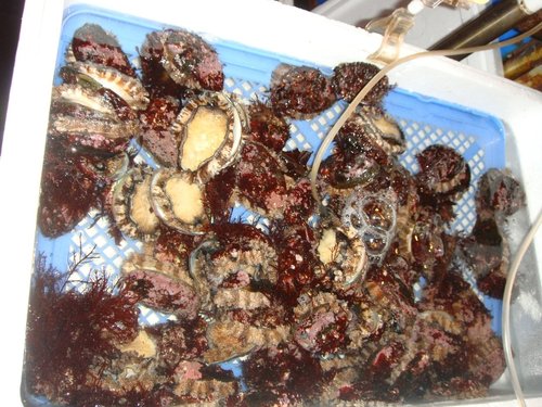 這樣大家應該不陌生吧!它就是鮑魚上圖的還是活的,下圖的就是已經殺下來準備現烤鮑魚
