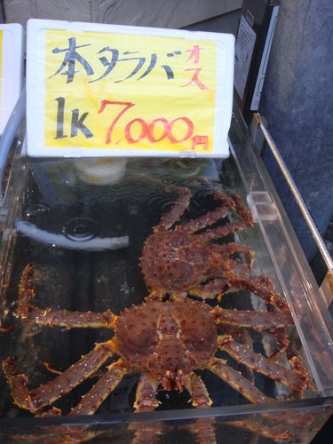 另外朝市最多的就是一隻又肥又大的帝王蟹與毛蟹來到這即使不買任何海鮮,光看這一隻隻鮮紅肥美的帝王蟹一字排開,就非常的讓人過癮呢!
