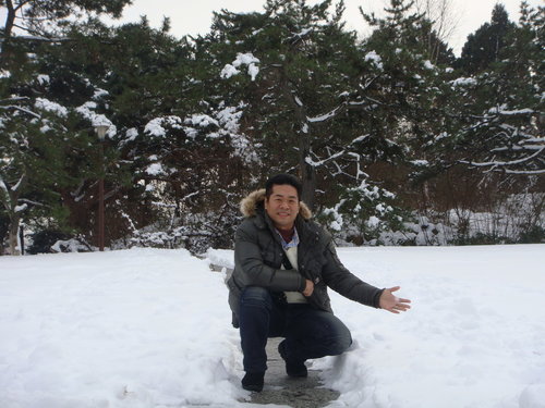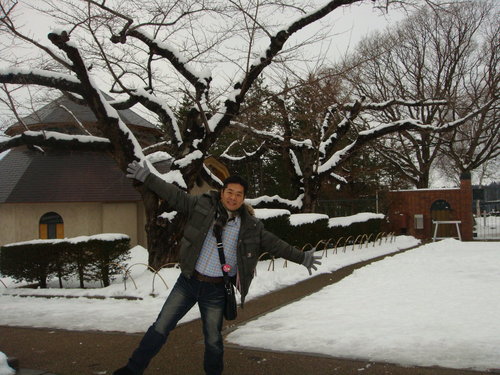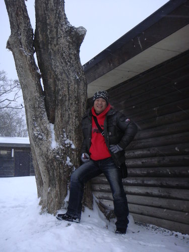 帥酷爸沒挑白雪的景,竟然挑了這一顆枯樹下叫我幫他拍張型男照我哩勒~~