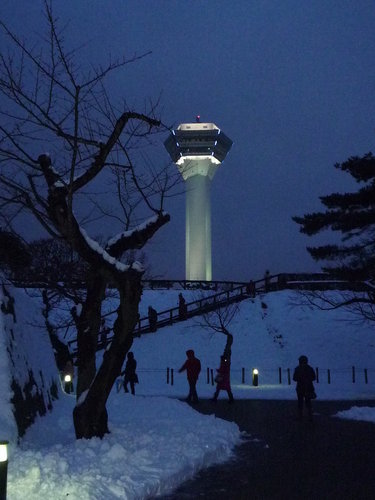 離開五陵郭我們就要搭乘纜車登上這支高高的燈塔上觀賞夜景