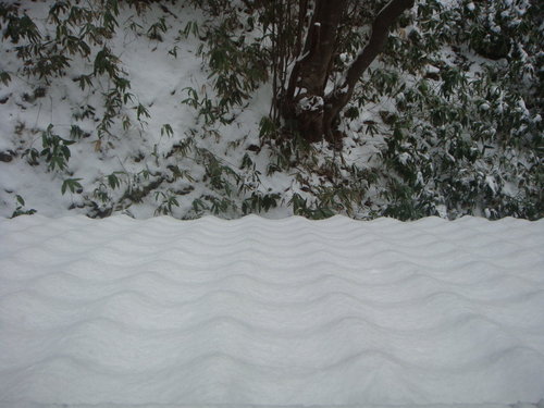 屋簷上厚厚的一曾雪,從上往下拍猶如白雪波浪一般