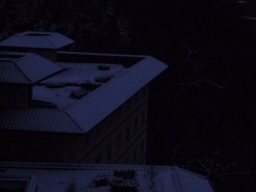 一夜的好眠日本時間六點半起床,這時外面的天還是黑的這個時間從外看出飄在飯店屋簷上的白色雪景還挺美的