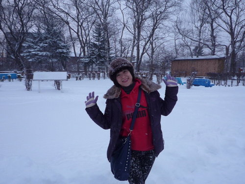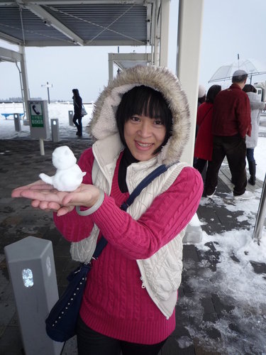 飛機一落地就看到機場上像似鋪著雪白色的毯子這時飛機上就哇~哇~哇~的聲音出現了可想而知此時大家的心情是非常的興奮呢!