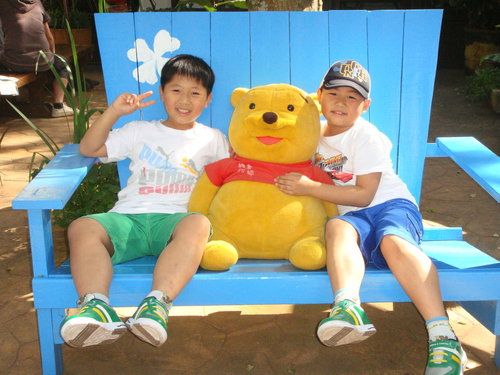 有那麼一隻可愛的維尼熊當迎賓當然要與牠合照一張唄~(帥酷哥你笑的好像維尼熊喔!