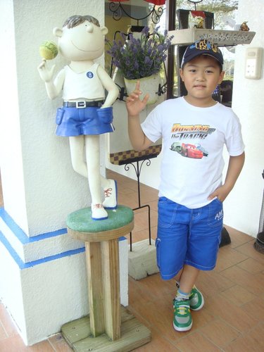 餐廳的室外有很多可愛的造景玩意,帥酷弟特別有興趣拿著相機猛拍