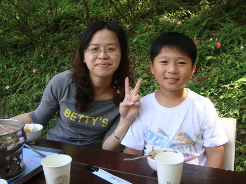 帥酷媽和帥酷哥從餐廳內結帳出來帥酷弟拿著相機跟我們喊著看過來這拍出來的感覺還真不賴,帥酷媽我很喜歡唷~