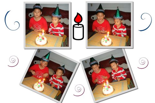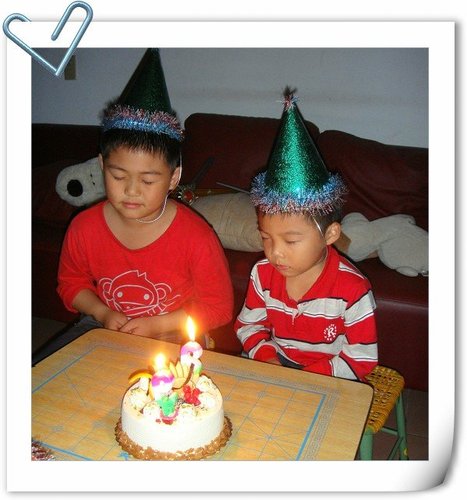 唱完生日歌,兩位小壽星閉著眼睛認真的在許願 這兩位小壽星的願望都希望自己的考試成績都會是100分 帥酷弟說出了另一個願望是希望大家的身體都能健健康康