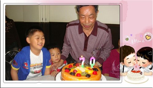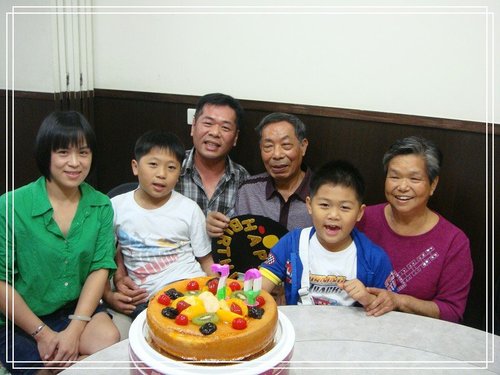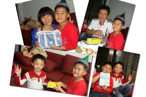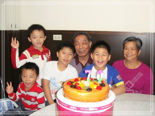 帥酷弟看著帥酷爸藏寶圖上畫的指示,一個地方一個地方找 最後真被帥酷弟給找到了唷!帥酷爸送帥酷弟一隻派大星啦! 帥酷爸這樣的禮物送法帥酷媽事先也是不知情的 都是帥酷爸自己一個人神秘的進行呢!這樣還挺特別的吼~ 2010/11/21帥酷阿公70歲生日宴 文章標題打著祖孫慶生會,當然不是只有小壽星 還有我們家另一位帥酷兄弟的最愛帥酷阿公過70歲生日 帥酷阿公的農曆生日和帥酷弟只差一天 帥酷媽要生帥酷弟時預產期過1週.酷弟還不想出來.帥酷阿公的生日也即將到來 大夥才再說該不會要等著跟阿公同天生日吧!就在阿公生日前一天來報到喽! 雖然是選在前一天沒有同天,不過大家都說酷弟真會算日子呢! 內外孫&麻吉孫跟阿公說生日快樂.祝福身體健健康康