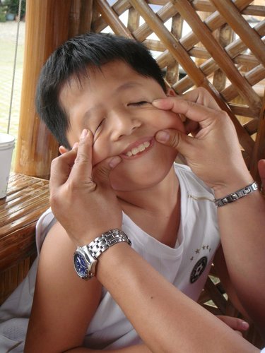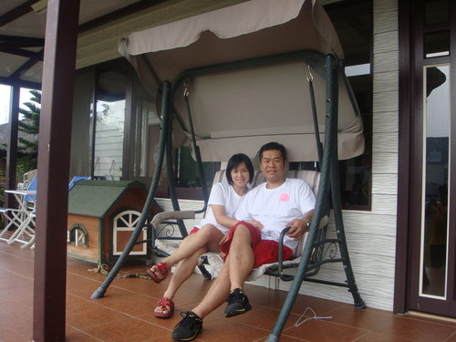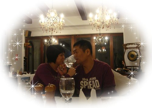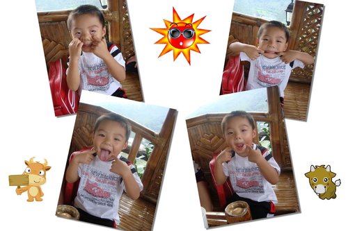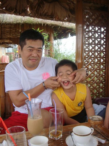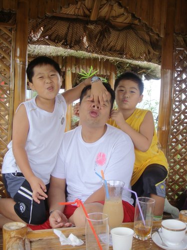 再來一張活潑開心一點的,看起來好像是帥酷爸比較開心吼~~ 因為帥酷爸開心到臉紅的像是紅面關公溜~~