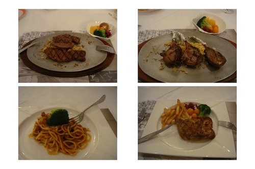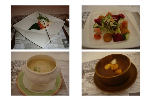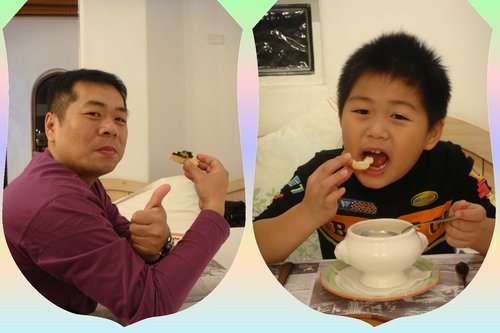 這是海鮮定食餐,左下方那一個就是海鮮燉飯這一餐發生了一個小插曲,就是當帥酷爸打開燉販時發現裡面有一根頭髮當下帥酷爸告訴帥酷媽,誰知這時店內服務生正走過來倒茶讓他看到了這一目,服務生一直跟我們說對不起我們就說沒關係啦!沒想到過一會兒廚房內煮廚親自出來說對不起呢!這種精神真是讓人佩服