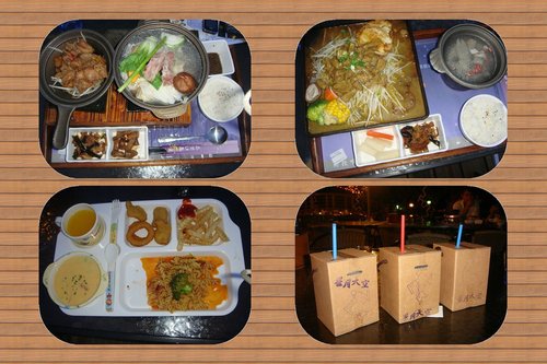 我們今晚的餐點 : 左上[香草檸檬幾腿燒] 右上[東洋風咖哩羊肉燒] 左下[快樂兒童餐] 右下[星月天空特別盒裝附餐飲料]