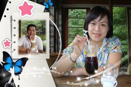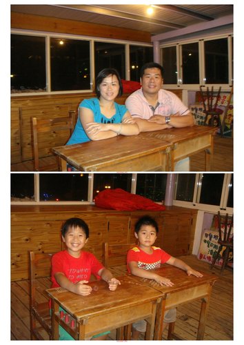 我們帥酷夫妻坐在學生時期的桌椅,懷念著學生時代的快樂時光 帥哥酷弟說放上課的桌子椅子在這裡做什麼啊? 是要在這裡上課喔!我說如果再這裡上課也是一種享受呢!