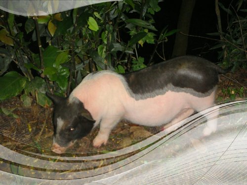 要離開星月天空時在園區門口看到麝香豬媽媽到外面散步