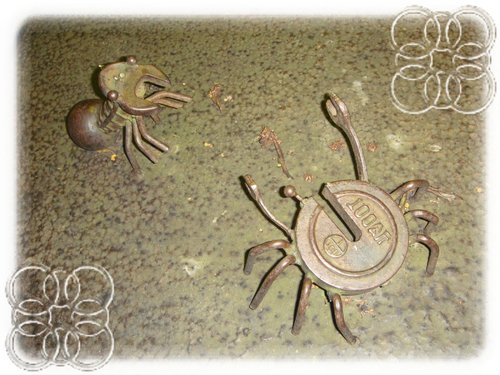 這很特別喔!你們有沒有看出來適用什麼東東做出來的啊! 是用古時候的秤重用的秤鉈加上螺絲起子與一些鐵組成的