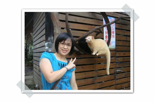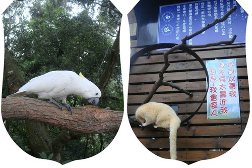再繼續走進去就看到一堆人圍觀著拍照 原來就是鸚鵡與這隻超可愛的白狐 白狐後面版子上寫著[你可以看我.但不要太靠近我.因為~我會咬人] 看起來超可怕的吼!