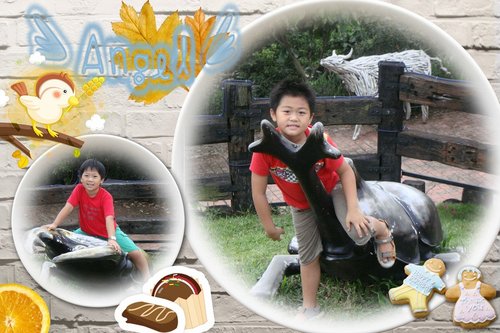 兒童遊戲區內的模型甲蟲,兄弟倆看到就叫我幫他們跟模型甲蟲拍照 而且都是選自己喜歡那隻拍 酷弟去廁所的時候還發現了一隻活的甲蟲呢!