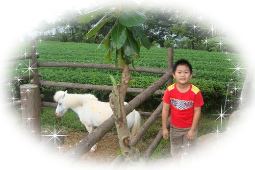 帥酷兄弟倆有興趣的就是這兩支啦! 帥哥坐的這一隻應該是園區內的羊咩咩,酷弟這一隻應該是茶園旁的小馬吧! 帥酷媽也不太清楚是不是啦!都是我自己亂掰的啦!