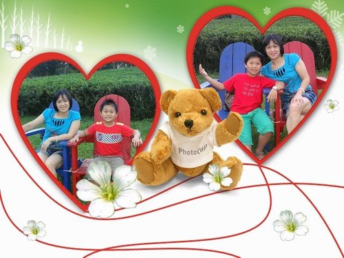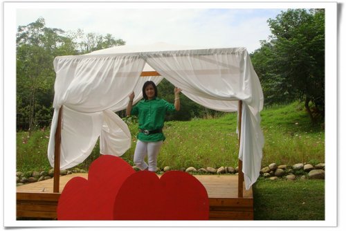 原本我是想要坐在愛心裡比一個愛心來送給帥酷爸的 可惜前幾天有下雨草地上都有水濕濕的 所以我的專屬攝影師帥酷爸就叫我乾脆站到愛心前面來好了 結果一到前面來帥酷媽我原本想比送帥酷爸的愛心就給忘了哩!
