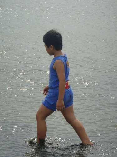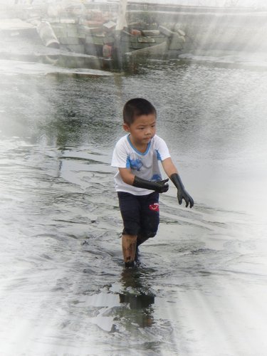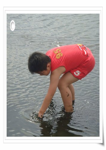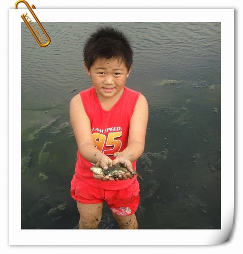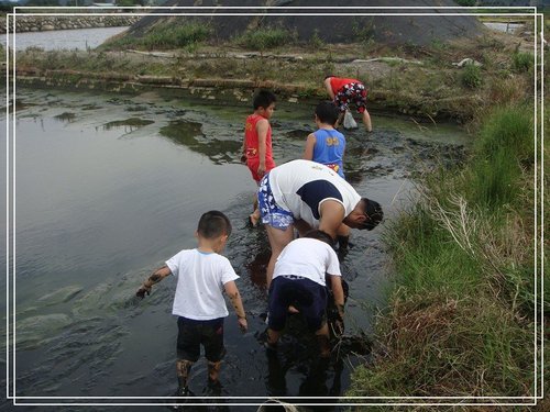 帥哥酷弟摸的很開心唷!其實這不是兄弟倆第一次摸蜆 兄弟倆之前就曾經在外婆家菜園邊的小水溝摸過野生蜆 只是現在的野生蜆都很小顆量也很少,就沒有帥酷媽小時候摸的多了 帥酷媽跟兄弟倆說以前媽咪都是在這小水溝摸蜆回去晚上可加菜 兄弟倆異口同聲說哪有可能,又摸沒有很多,而且都很小顆怎麼吃啊! 我說是現在種田的農夫都有使用很多農藥,所以就會影響水質 水質不好野生蜆就回存活不久,也就無法延續下一帶,所以量就變少啦!