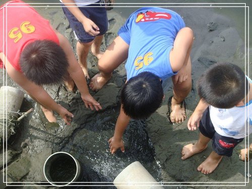 摸阿摸 . 拼命摸 今天的主要目的是要讓孩子體驗摸蜆,結果是這幾位阿爸摸的最賣力啦