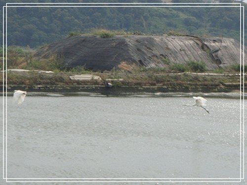 風一吹將蜆池水面起一個波一個波的,看起來好像小海浪一樣喔! 這一張有點像海景吼~(免強啦!)