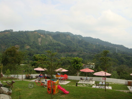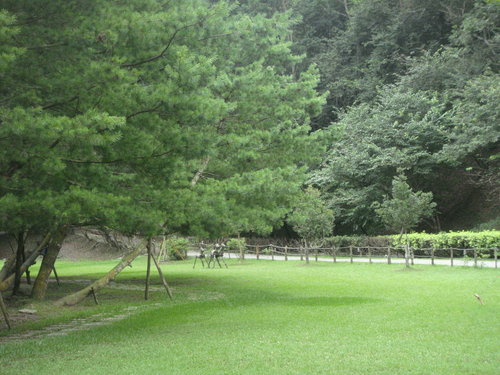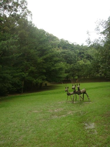 我們在這享受豐富大自然的美景,擁抱間單的幸福 綠油油的草皮上還有用木頭做來造景用的糜鹿 孩子們很想再綠油油的草皮上給它用力的奔跑一番 可是就因為前幾天下雨草皮上都還是濕濕的,所以沒讓孩子們奔放的跑