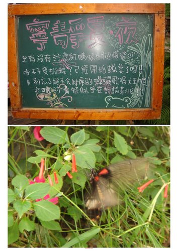 這裡出現了很多蜻蜓與蝴蝶喔! 下面這一隻蝴蝶帥酷爸為了要拍牠的鏡頭 牠就是不肯乖乖的歇著,總是不停的飛舞 最後好不容易總於停下來啦!速度要快的按下快門 不然牠又不安份的到處飛舞喽!
