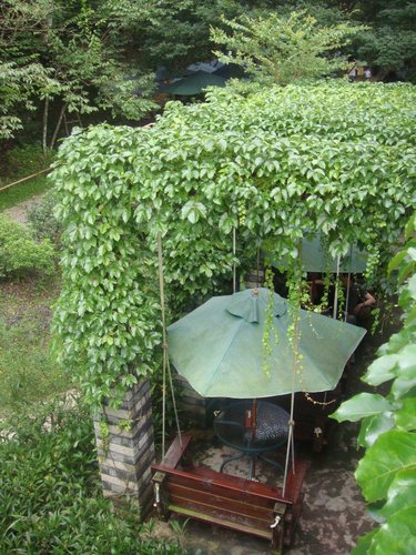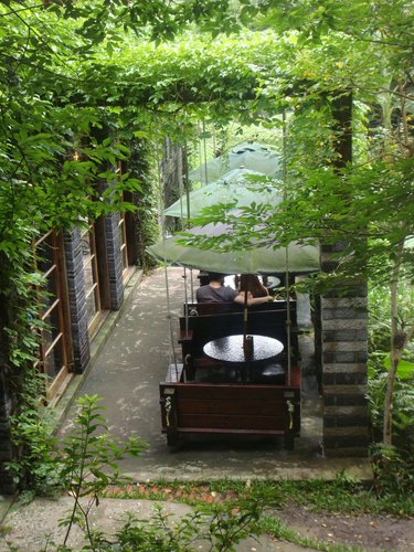 樹陰下的座位,今天天氣不太穩定所以大家怕下雨都是選坐在室內