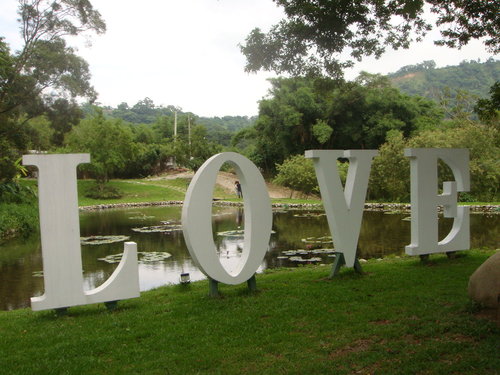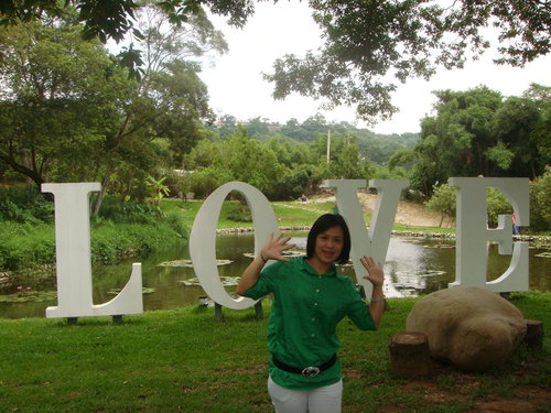 這裡園區內稱之為{情人湖畔} 有荷花 大樹 林蔭 湖邊座椅,還有這LOVE的浪漫字體 我們帥酷夫妻倆在這拍照.賞湖景感受像情侶般的濃情蜜意