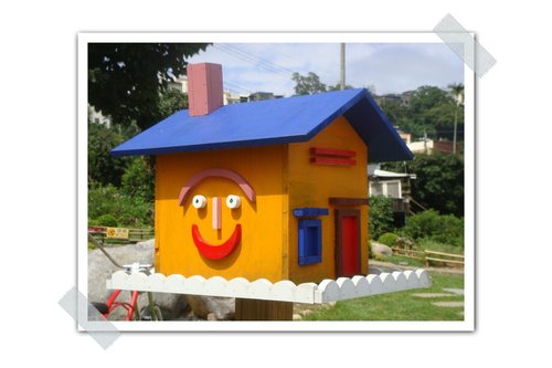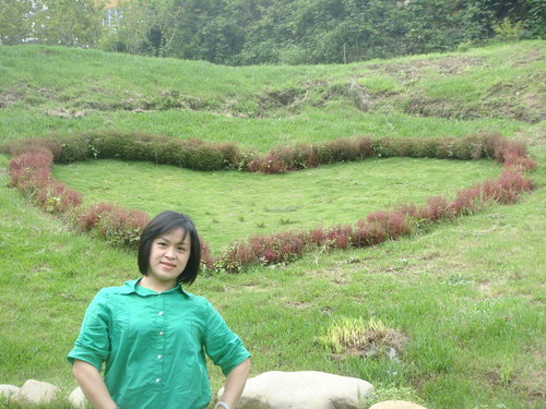 愛心花園在綠地之間有顯現出建築支用色與與環境的搭配 讓特別的紅色愛心與黃色建築的餐廳 都很強眼的顯現在這綠油油的山坡草地上