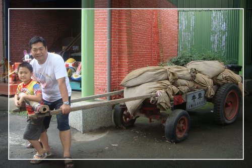 我叫帥酷爸去拉一下牛車,帥酷弟說他也要拉啦! 我問帥哥說你要拉一下嗎?帥哥回我說我又不是屬牛