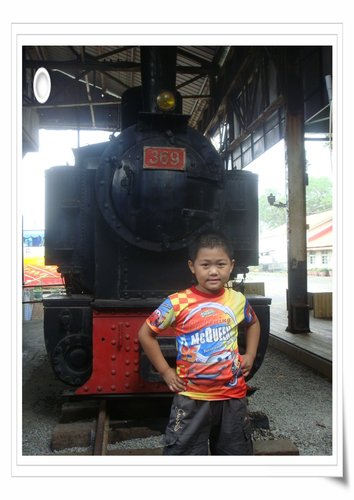 接下來進入了販售館內,牆壁上掛著以前的舊火車 這時帥哥哥就跟我們說以前這種蒸氣火車就是會冒出黑煙 會影響空氣的污染,所以漸漸才改為電動火車 我問哥哥你怎麼知道,哥哥說自然老師的呀! 我說哥哥啊!老師焦的你有在聽喔!不錯很好親一下