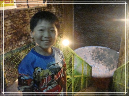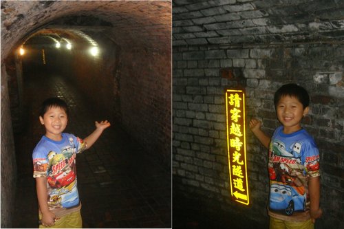 再來的點就由帥哥來帶路喽! 一知道要來月眉糖廠時就告訴我們說要待我們去探險 還跟酷弟說要帶手電筒,我心想到底是什麼啊!還要帶手電筒 到的時後才知道是要走囪底隧道 我說哥哥啊!你也未免太誇張啦!隧道就有燈啦!哪還要手電筒啊!