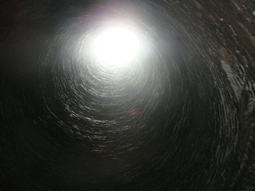 月眉鐵筋混泥土煙囪 製造日期 : 昭和14年,民國28年 製造商 : 大日本製糖株式會社;台灣支社月眉製糖所 1944~1945年二次世界大戰,工廠煙囪遭受盟軍轟炸 抬頭探視.煙囪彈痕累累.回顧歷史.千瘡百孔.不忍卒賭 這是載煙囪內由下往上看上去的感覺