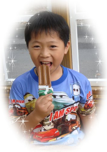 帥哥哥吃梅子口味的冰棒,看哥哥的表情就知道好吃啦!